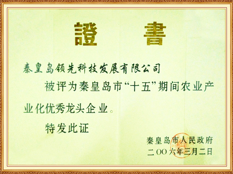 秦皇島“十五”期間農業(yè)產業(yè)化龍頭企業(yè)